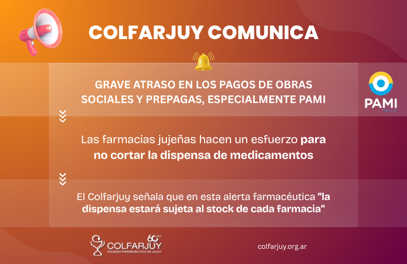 Frente a este escenario, el Colegio Farmacéutico de Jujuy declara una «alerta farmacéutica» y convoca a las autoridades y actores del sistema a asumir la responsabilidad que la situación exige.
