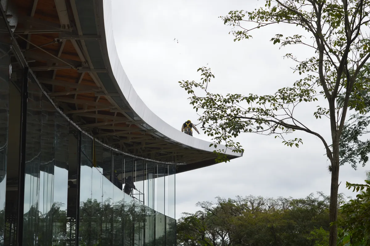 Otro ítem del trabajo actual es la del proceso para la finalización de la instalación de vidrios, sobre lo que Tejeda detalló que “estamos trabajando en el espacio principal donde se albergarán esculturas, y que es el vidriado que da hacia el río Grande, con vidrios de más de 9 metros de longitud, de origen chino, y otros de 6,20 metros, estos de origen chileno, que son los que separan los espacios interiores con el exterior en los otros sectores del museo y que tienen la cámara de aire y el tratamiento especial para la aislación correspondiente”.