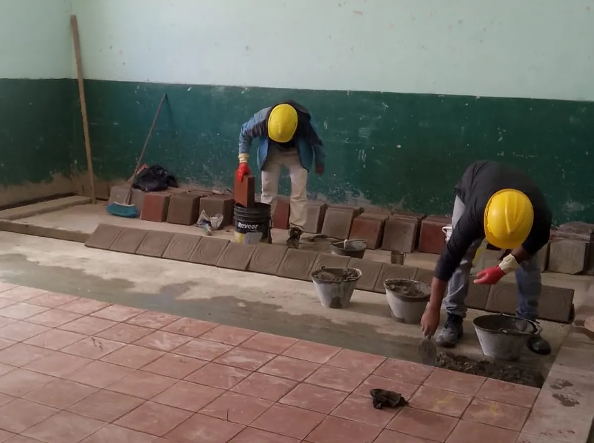 Los trabajos, en el marco del PROMACE y con financiamiento del BCIE, incluyen la demolición del piso de madera existente en la Escuela Nº 31 y el Jardín Independiente Nº 37, que será reemplazado por un nuevo revestimiento en todas las aulas. Además, se llevan a cabo reparaciones en las paredes afectadas por la humedad.