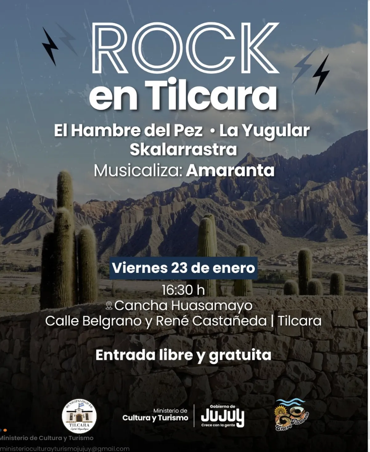 El evento se realizará el 23 de enero en la cancha Huasamayo. El festival es gratuito y abierto para todo público.