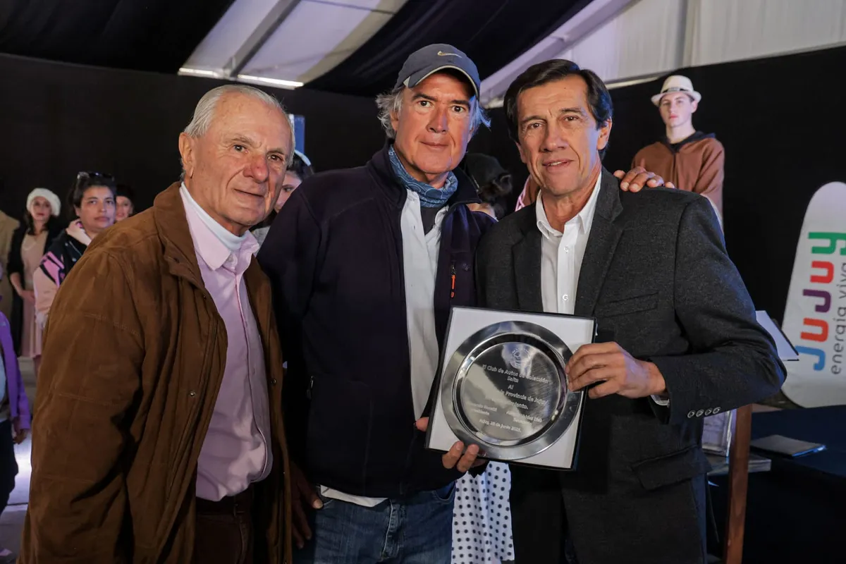 En este marco, el gobernador Carlos Sadir recibió una placa de agradecimiento por parte de Jorge Nocetti, presidente del Club de Autos de Colección Salta (CACS).