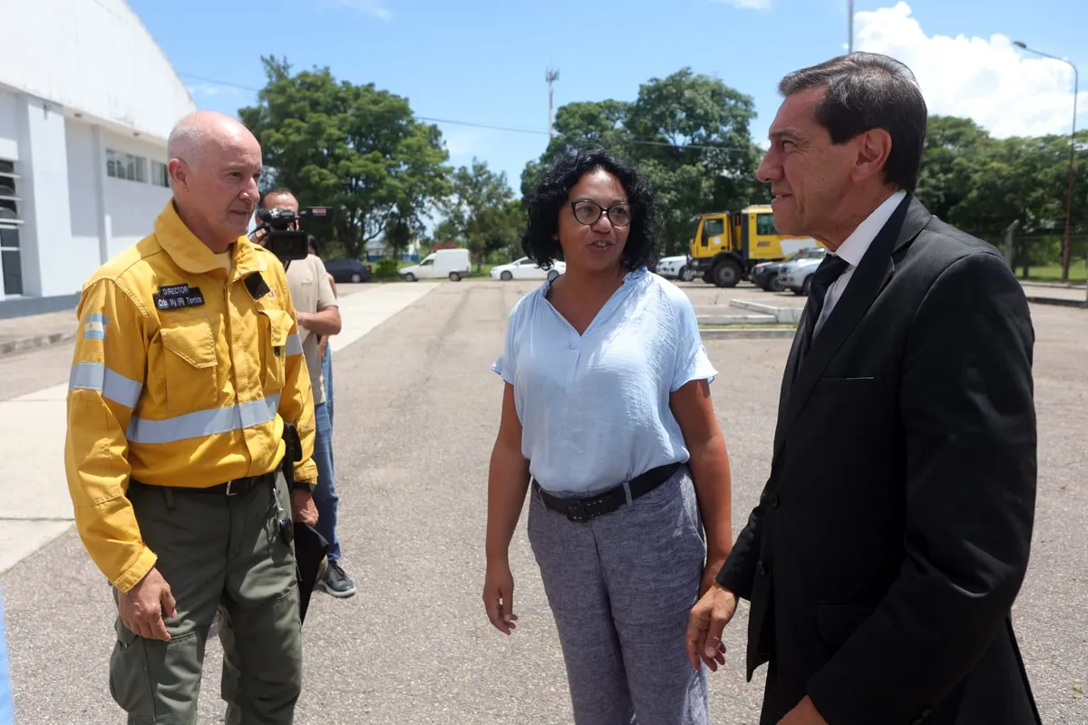 El mandatario provincial estuvo acompañado por la secretaria de Biodiversidad y Desarrollo Sustentable, Ana Rodríguez, en representación de la ministra de Ambiente y Cambio Climático, María Inés Zigarán. También estuvieron el secretario de Calidad Ambiental, Gastón Chingolani, y el director de Incendios de Vegetación y Emergencias Ambientales, Marcelo Torrico. Además de los distintos jefes de las 5 bases operativas.